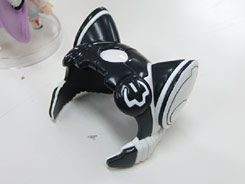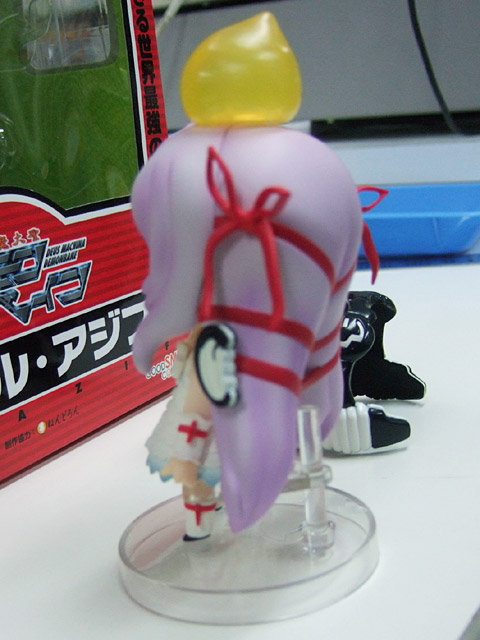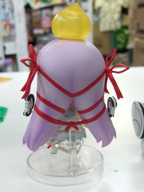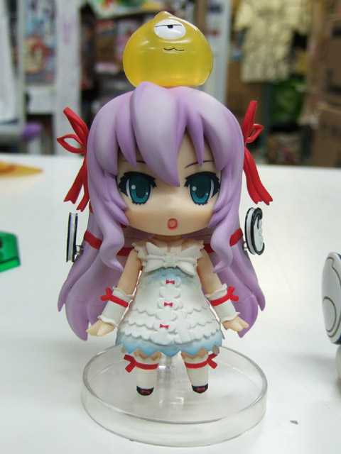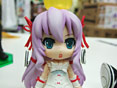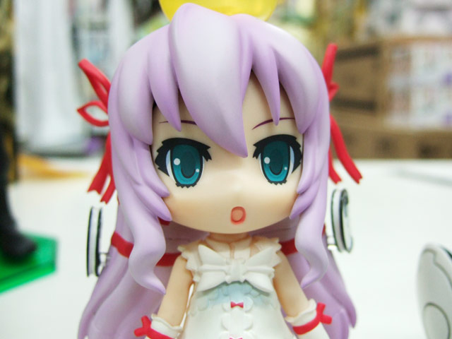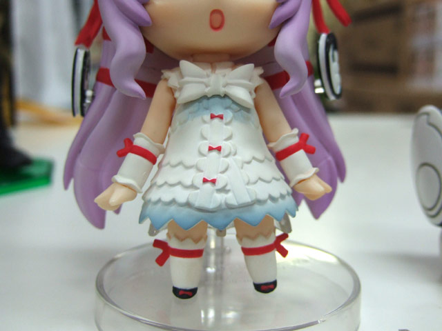 これは、以前ドリームパーティ東京2007秋でのキャストサンプル展示もお伝えした、「斬魔大聖デモンベイン」のキャラ「アル・アジフ」をねんどろいどにしたもので、グッスマの商品説明によると「ニトロプラスの人気ゲーム『斬魔大聖デモンベイン』から、メインヒロイン「アル・アジフ」をねんどろいど化しちゃいました!表情パーツ3種(通常、不遜、怒り顔)は傲慢な性格を表しながらもユルかわいい。実際に装着可能なアルメットや、クリア成型で作られた使い魔のダンセイニ。ダンセイニを抱えるための腕といった付属品も充実!かわいいアルをねんどろいどコレクションに加えてください。」と紹介されています。