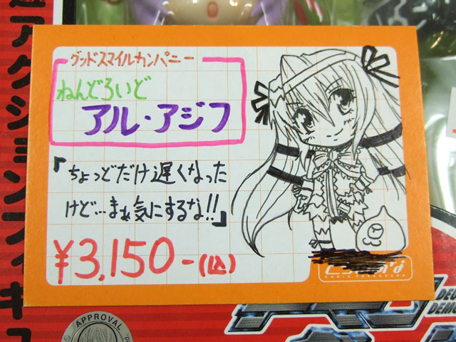 2月12日、一部に不具合が見受けられたため、発売が延期されていた、グッスマ「斬魔大聖デモンベイン ねんどろいど アル・アジフ」(AA)が、POPでは「ちょっとだけ遅くなったけど・・・まぁ気にするな!!」としてとらのあな本店などに入荷していました。他、ダイキ工業「山田屋の剣士さん」(AA)、バンダイ「メタモフィギュア 涼宮ハルヒ バニーVer.1.5」(AA)発売等まとめて。