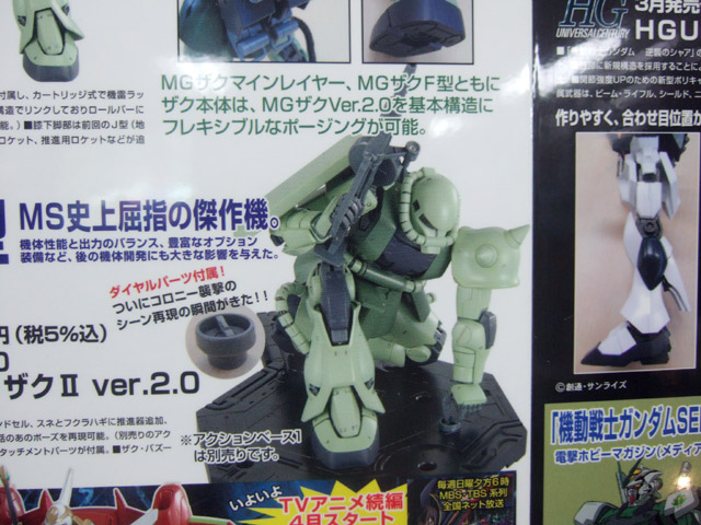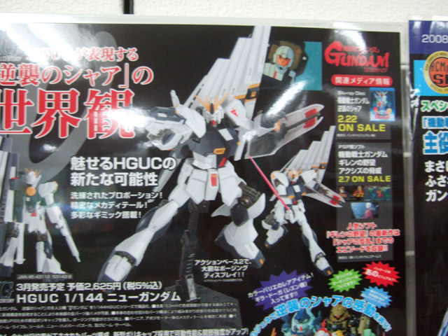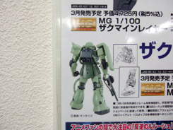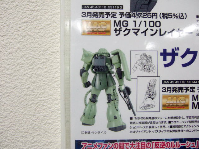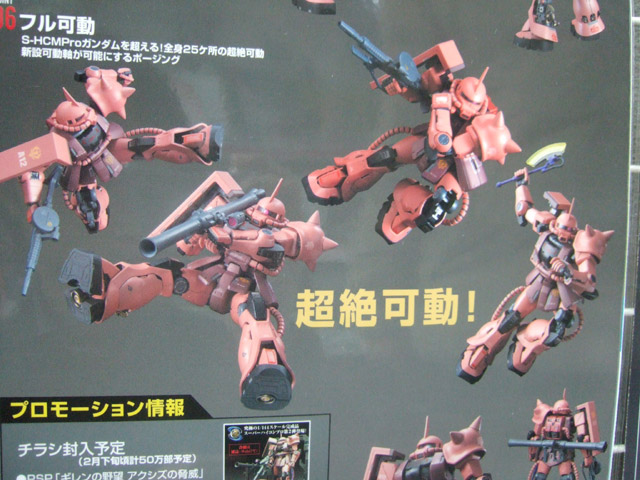 キャラシティで毎月恒例の、バンダイガンダムもの+αの新商品POPに、「SUPER HCM Pro MS-06S シャア専用ザク」(AA)、「HGUC 1/144 ニューガンダム」(AA)、「MG 1/100 ザクマインレイヤー」(AA)、「1/200 スピードグレードコレクション 03 Ζガンダム」(AA)等の、3、4月発売ものが追加されていました。