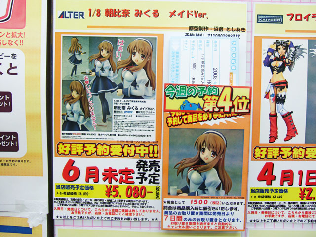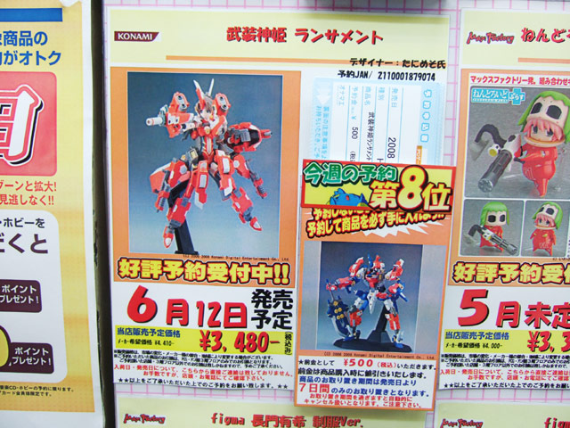 2位には先着でマフラーパーツプレゼントが公表された「Figma 長門有希 制服ver.」(AA)がその効果か、2位に上昇。