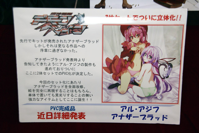 これは、WHF有明16で展示されていたPOPイラストを立体化したもので、あみあみの商品説明によると「公式イラストをもとに360度どこから見ても破綻しないまさに一枚の絵画的作品が完成した!!その最大の見所はボディーラインの美麗さだろうか。特に大腿部、腰周り、背中のラインは必見!アナザーブラッドのドレスにはクリアパーツを使用し立体的造形の完成度を更に高める。」と紹介されています。