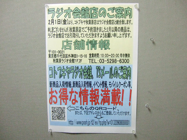 なお、コトブキヤ秋葉原店で受け付けていた予約商品などは、POPによるとコトブキヤラジオ会館での引き取りになるとのことでした。