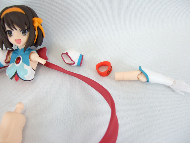 「超勇者ハルヒ」フィグマ本体、差し替えパーツ(顔全2種・手全5セット)、剣、腕章、専用可動台座付属。