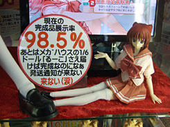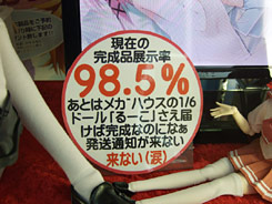 掲示されたPOPによると「現在の完成品展示率98.5% あとはメガハウス(アルファオメガ)の1/6ドール「るーこ」さえ届けば完成なのになぁ発送通知が来ない 来ない(涙)」とのことw