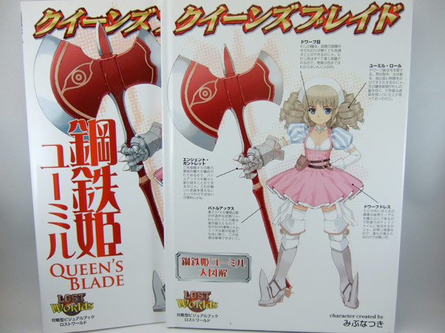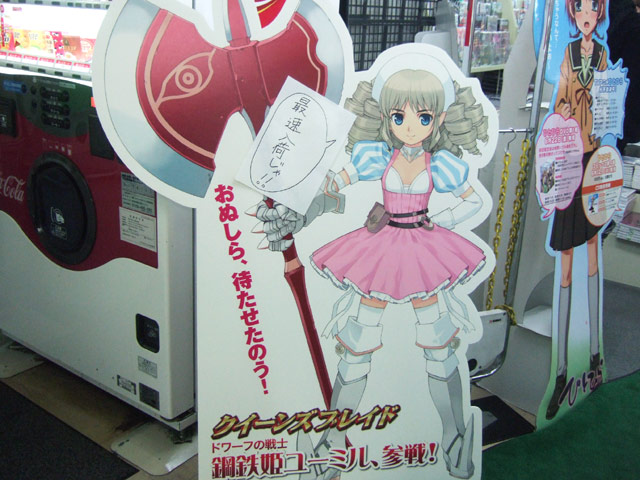 以前お伝えした告知POPでは、2月15日発売予定となっていた、クイーンズブレイド第9弾「鋼鉄姫ユーミル」(AA)と「美闘士列伝 第2弾 古代王女の書」(AA)が、アキバでは13日にいくつかの店舗で発売されていました。先にフィギュアやおっぱいマウスパッドが出ていたユーミルは、2006年の発表以来、実に2年たっての本誌発売w とらではしおりプレゼントフェアも開始。
