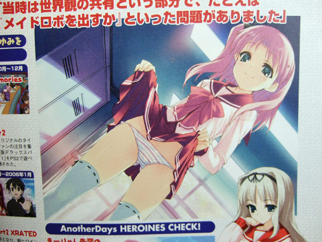 「ToHeart2 AnotherDays」(AA)特集ページでは、表紙にもなっている、ささらと、はいてないように見えるまーりゃん先輩のイラストがw