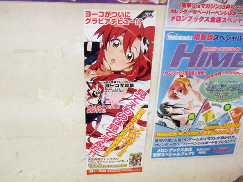 2月1日発売予定の一迅社「天元突破グレンラガン ヨーコ写真集」(AA)の告知POPが、メロンブックスの入り口階段壁面に掲示されていました。これは、商品説明によると「裸Yシャツ♥お風呂♥メイド服♥ビキニ♥などなど様々なシチュエーションで撮り下ろし(書き下ろし)された魅力的な写真がいっぱい!!」というイラスト集で、POPイラストはブラつけてない?イラストでした。