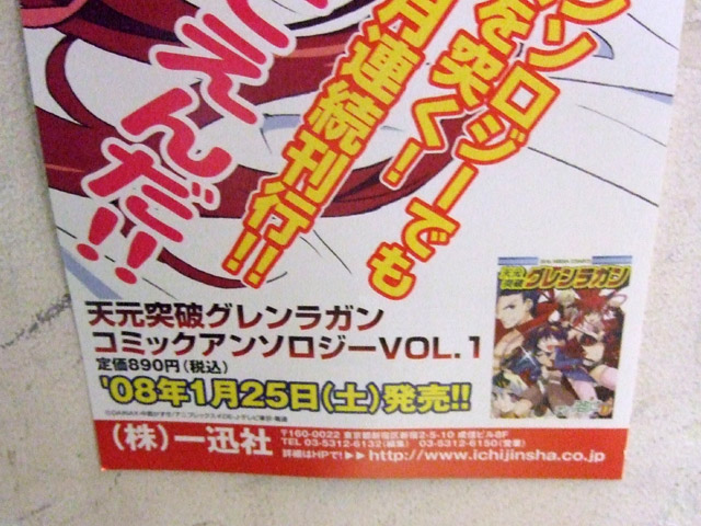 また、POPには「アンソロジーでも天を突く!怒涛の3か月連続刊行!!」とかかれ、POP下部によると「天元突破グレンラガンコミックアンソロジー Vol.1」(AA)(税込890円)が1月25日に発売されているみたいです。
