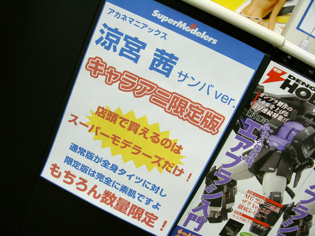 POPには、「店頭で買えるのはスーパーモデラーズだけ!通常版が全身タイツに対し限定版は完全に素肌ですよ もちろん数量限定!」と書かれていました。