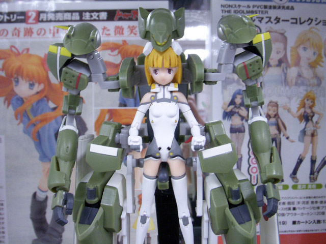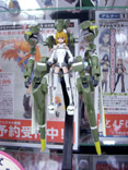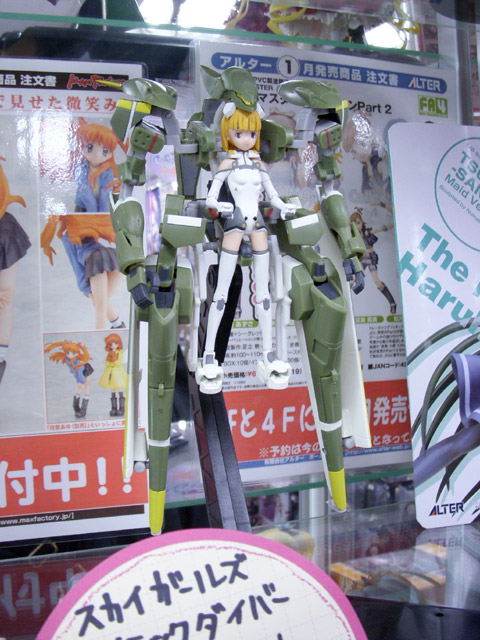 FREEing「スカイガールズ ソニックダイバー 零神」(AA)のサンプル展示が、キャラシティにて、1月27日までの週末限定で展示されていました。これは、「スカイガールズ」に登場する機体、「零神」とその乗り手「桜野 音羽」をアクションフィギュアとして立体化したものです。今回展示されていた「零神」は外骨格モードですが、Gモード、ASモードにも変形可能みたいです。