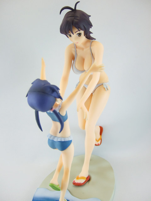 これは、ワンフェス2007冬等でサンプル展示のあった、アニメ「ウィッチブレイド」のキャラ「天羽雅音」と「天羽梨穂子」の親子を、第16話で登場した水着姿で立体化したもので、とらのあなの商品説明によると「天羽雅音と梨穂子が親子揃って水着姿で登場。セクシーなコスチュームに身を包んだ女性達の戦いを描いたアニメ『ウィッチブレイド』から、「天羽雅音」と「天羽梨穂子」がリゾート合コンの回で見せた水着姿で、親子揃って登場です。母親らしい白いシンプルな水着に身を包んだ雅音と、腰の部分に付いたフリルが可愛らしい紺色の水着を着た梨穂子の、親子水入らずの穏やかでほのぼのとした平和なひとときを再現したこのフィギュア。手を伸ばして母親に抱きつこうとする梨穂子と、それをしっかり受け止めようとする雅音の姿を表した動きのあるポージングは、親子二人の確かな信頼と愛情を感じさせ、この二人の間の強い絆をうまく表現しています。なかなか珍しい親子揃って立体化されたこのフィギュア。ウィッチブレイドファンは決して見逃せない一品です!」と紹介されています。