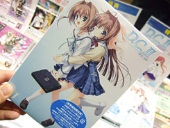 ゲームシティ外側B1階段付近にて、18日の特典イラスト公開開始時にはまだ掲示のなかった、Leaf「ToHeart2 AnotherDays 初回限定版」(AA)のショップ特典テレカの絵柄が公開されていました。