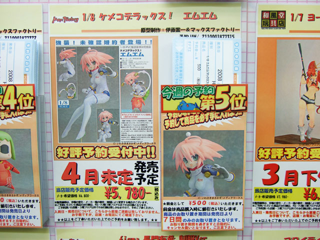 ソフマップ秋葉原PCゲーム・アニメ館で毎週更新されている、「週間予約ランキングTOP10」の1/14~1/20付分をお伝えします。今週も先週に引き続き、コトブキヤ「十波由真 メイドVer.」(AA)が1位。そして3位に海洋堂「フロイラインアスカ」(AA)がランク外から一気に急浮上。あと、マックスの「ケメコ」(AA)と「エムエム」(AA)がそれぞれ4位、5位に。2種購入の方が多いのかも?
