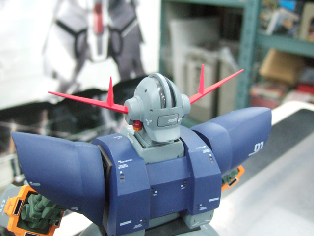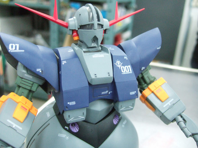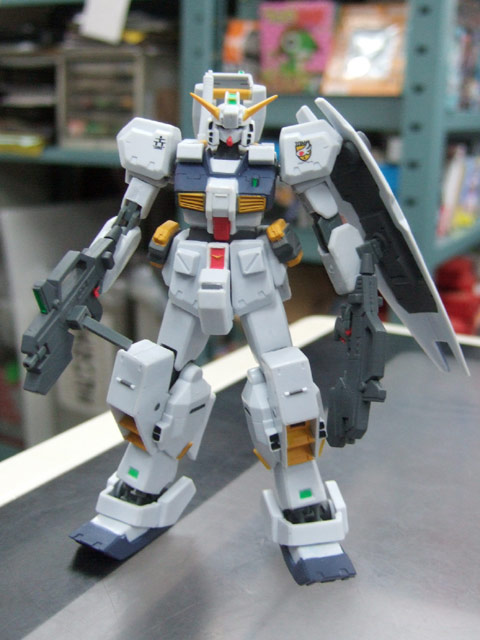 これは、Wikipediaによると『ガンダムTR-1[ヘイズル改]は、ジオン残党軍駆る改造MS 「シュトゥッツァー・シリーズ」との交戦後甚大な損傷を被ったヘイズルを、母艦アスワンに保管されていた予備部品とコンペイトウ配備のジム・クゥエルのパーツを用いて修復、強化した機体である。』という機体。