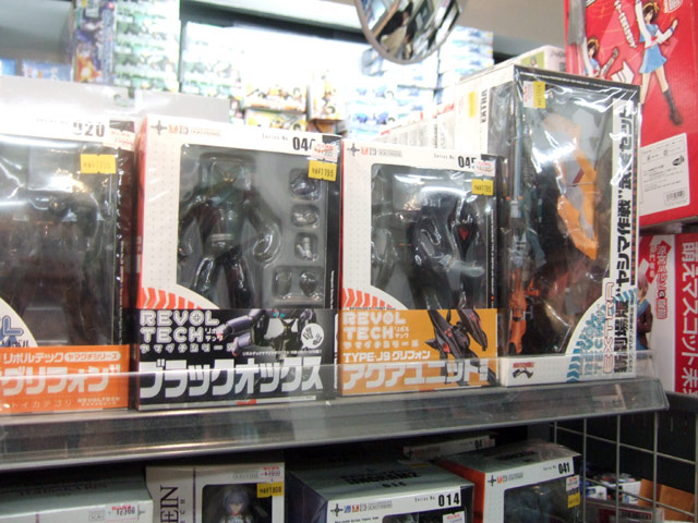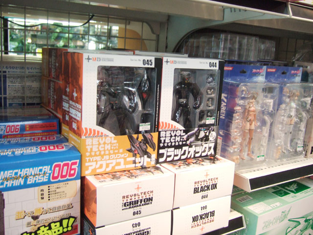 15日は毎月リボルテックヤマグチの発売日なので、2月15日にも「No.044 ブラックオックス」(AA)、「No.045 グリフォン アクアユニット装備」(AA)の2種が発売されました。海洋堂ホビーロビーでは、POPで『ダメージ表現可能な「内蔵パーツ」はリボだけ!!』として、「ブラックオックス」(AA)のパッケージ内容も公開していました。他、アキバでの販売の様子をお伝えします。