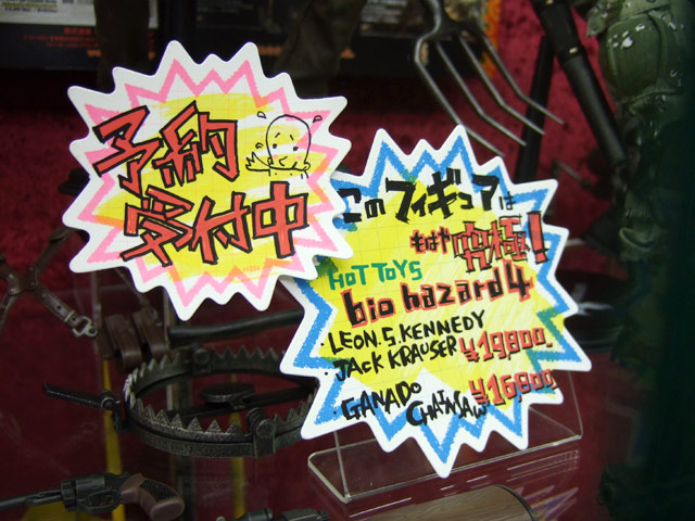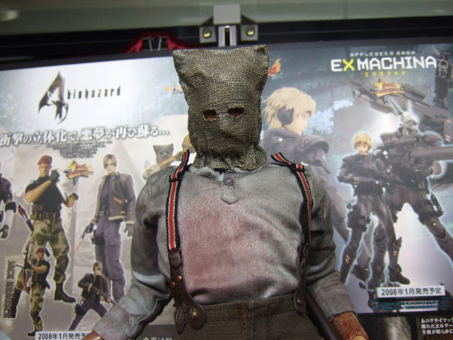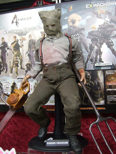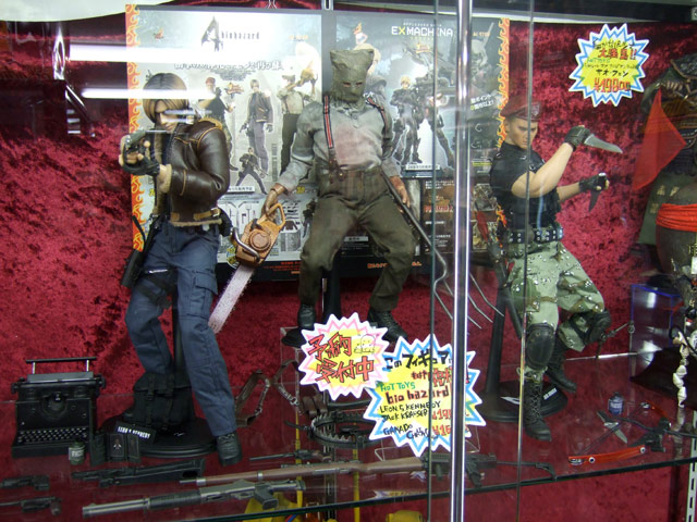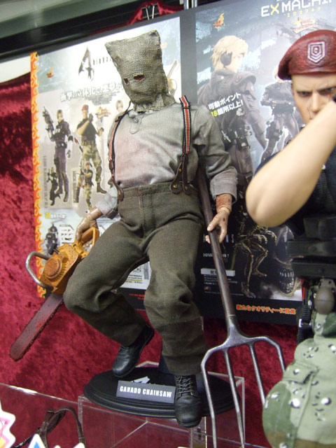 ホットトイズのアクションフィギュアのVideogame Masterpiece バイオハザード4の全4種のうち、「レオン」(RA)、「チェーンソー男」(RA)、「クラウザー」(AA)3種のサンプルがコトブキヤラジオ会館にて展示されています。これは、以前TGS2007でのサンプル展示もお伝えした、バイオハザード4のキャラをアクションフィギュアにしたもの。コトブキヤのPOPによると「もはや究極!」