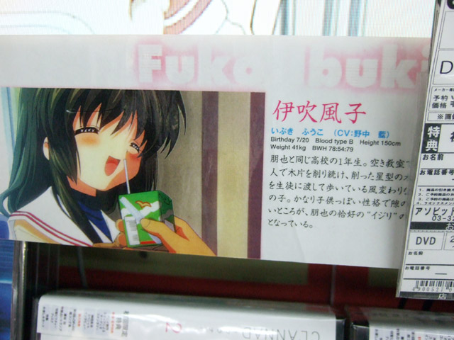 ゲームシティでも入荷されていて、シーンダイジェストや、伊吹風子のプロフィールなどが掲示されていました。