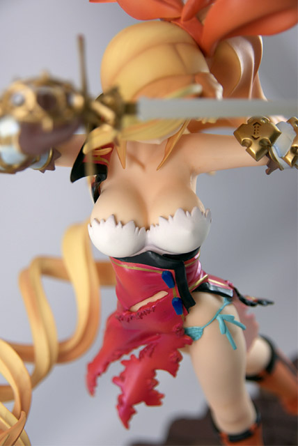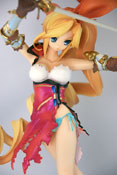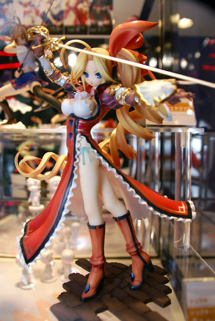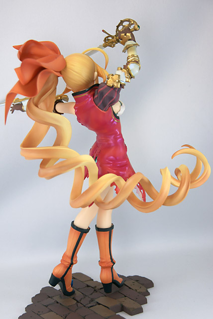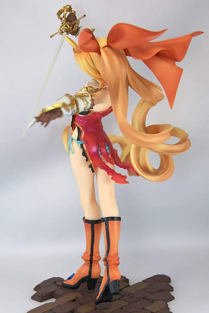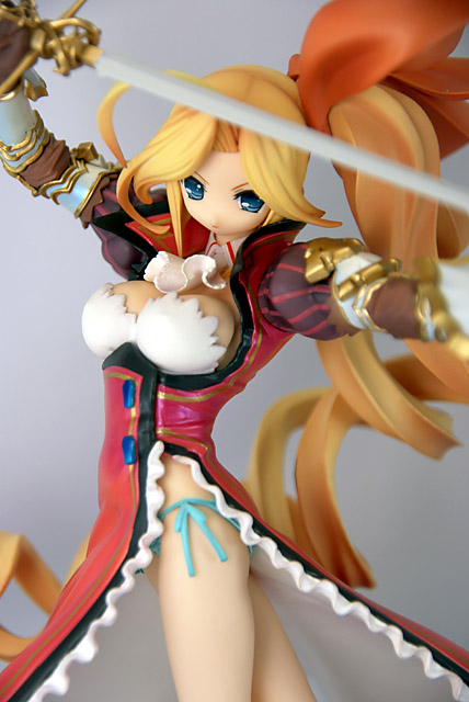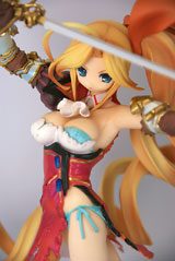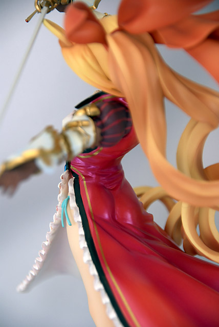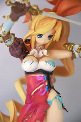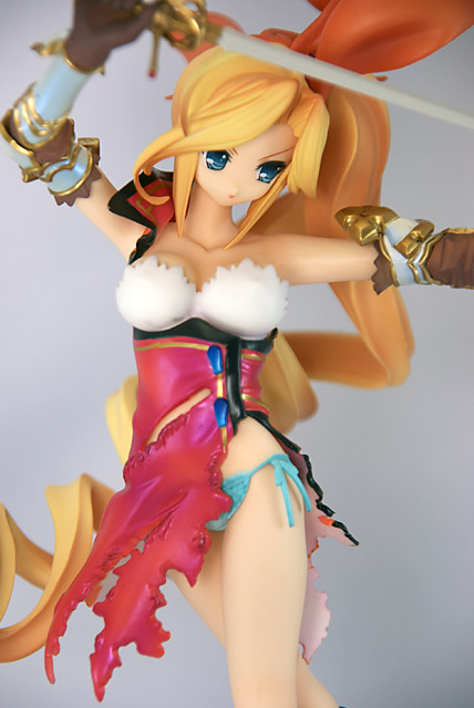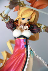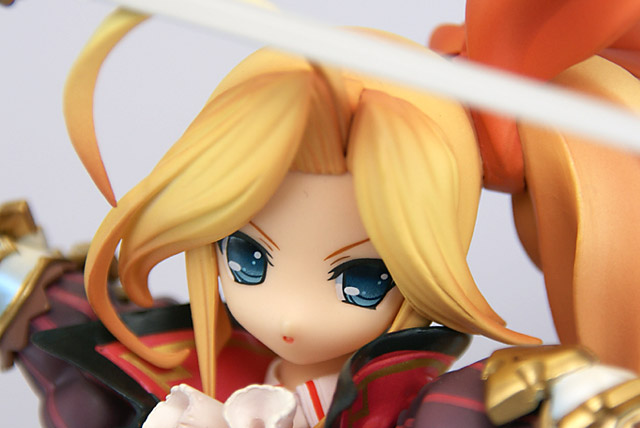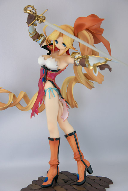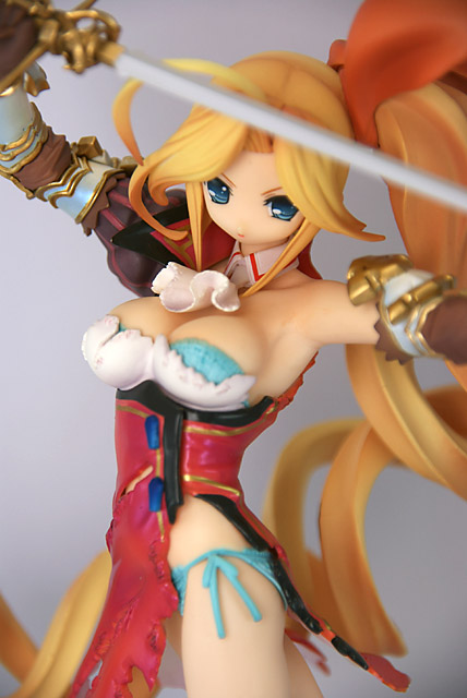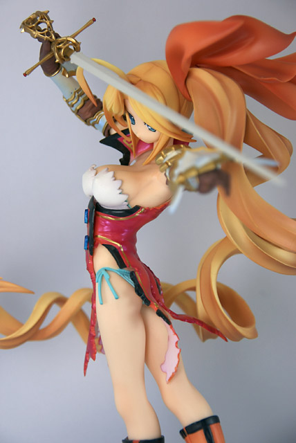 これは、ワンフェス2007夏等でもサンプル展示のあった、第1弾「美城暁」(AA)(参考レビュー)、第2弾「柳妹鳳」(AA)(参考レビュー)に続く、レッド x グッスマのコラボ企画「シュラキ」の第3弾となる、「シャル・ルズマン」を立体化したフィギュアで、グッスマの商品説明によると「黄金の髪と鎧が煌く!孤高の戦乙女、推参!!~イメージイラストを見事に立体へ昇華した精密彩色済みの完成品フィギュアです。大きく流れる髪や煌びやかなドレスからは、名家のお嬢様「シャル・ルズマン」の気品とプライドの高さを感じさせます。天涙の衣であるフランス貴族衣装は細やかな装飾も鮮やか。もちろんダメージVer.への交換が可能で肌の露出度UP。切り裂かれたドレスからは脚が大きく露出し、戦いの激しさとともに、身体の流れをより美しく強調します。」と紹介されています。