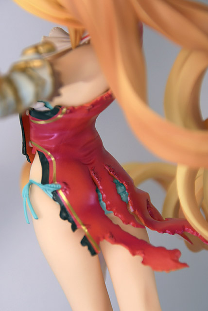 グッドスマイルカンパニー「シュラキ・トリニティ BOX-03 シャル」(RA)のレビューです。レイピアをかまえ、一見重厚な服に見えるのですが、スカートは大きく翻っていて、デフォでもパンツの横の紐が見えるステキデザイン&ポーズw また、発売記事でもお伝えしたように、今回も「シュラキシリーズ」の例に漏れず、ダメージバージョンと下着姿にすることが可能な仕様でしたw