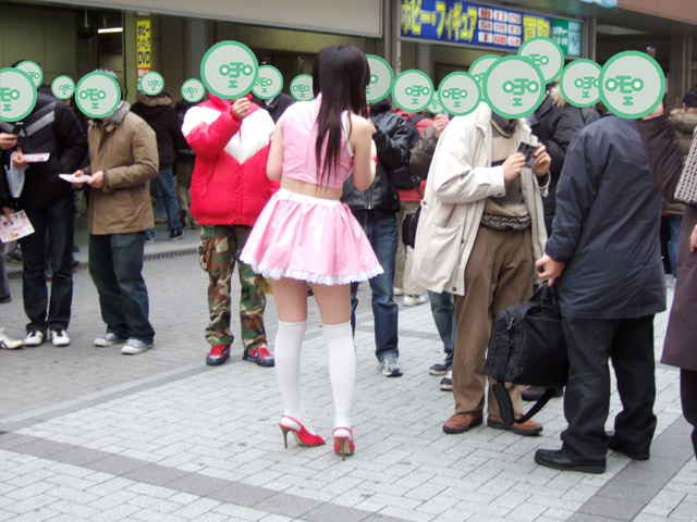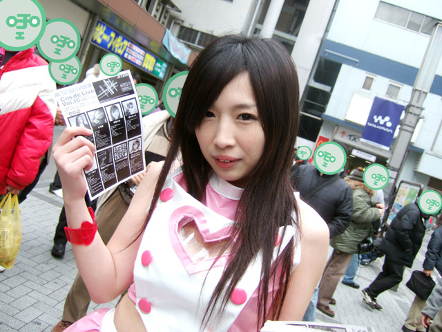 秋葉原駅前では、みやび!!さんが、14日に開催された、宅八郎プロデュース うにプロジェクトの「COS de Live(コスドライブ)vol.16」のチラシをオリジナルのコスチュームで配布していました。