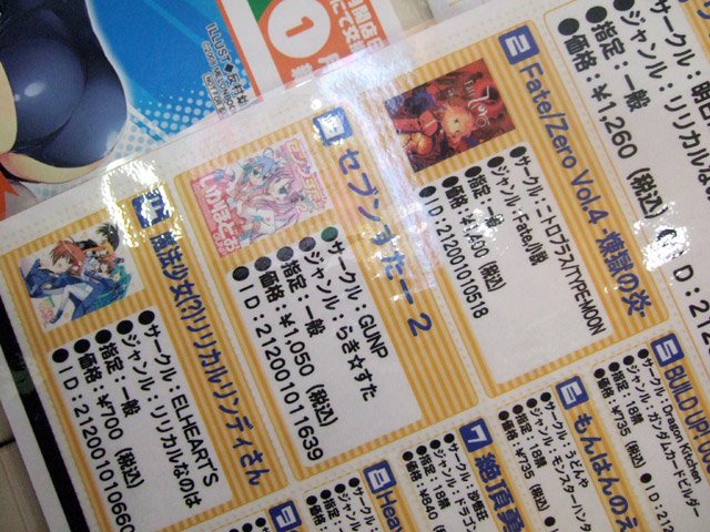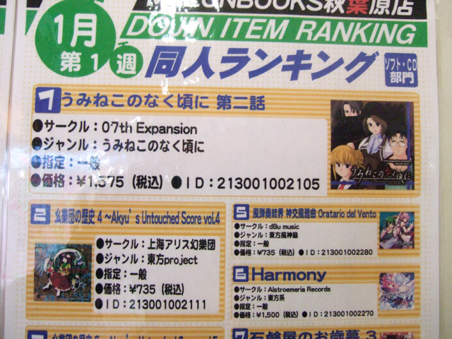 その掲示されていた、2008年1月1週目の「同人誌部門」ランキングは以下の通り