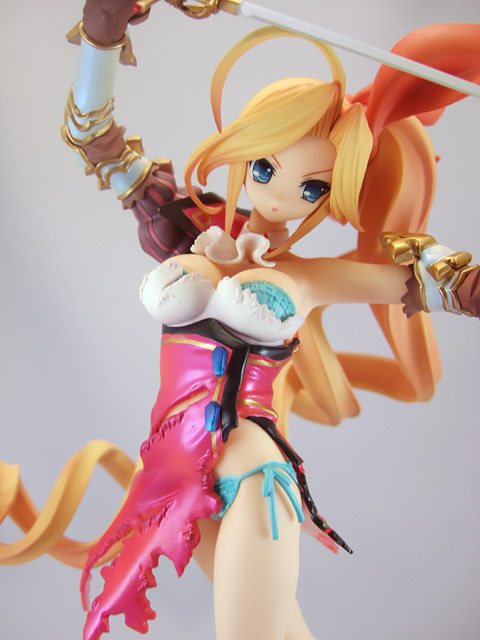 イメージイラストを見事に立体へ昇華した精密彩色済みの完成品フィギュアです。大きく流れる髪や煌びやかなドレスからは、名家のお嬢様「シャル・ルズマン」の気品とプライドの高さを感じさせます。天涙の衣であるフランス貴族衣装は細やかな装飾も鮮やか。もちろんダメージVer.への交換が可能で肌の露出度UP。切り裂かれたドレスからは脚が大きく露出し、戦いの激しさとともに、身体の流れをより美しく強調します。