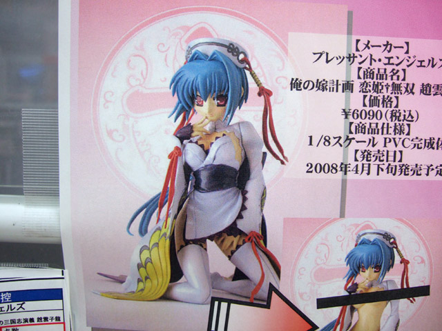 先日アキバで予約受付開始をお伝えした、プレッサントエンジェルズ「俺の嫁計画 恋姫†無双 趙雲子龍」(AM)ですが、18日にはとらのあな本店でも予約受付が開始していて、POPによるととら限定で「描き下ろしテレカ」が付属するみたいで、そのもろに乳首でてるラフ画が公開されていましたw 他、トイプラ「ToHeart2 クリア下敷き」4種発売等をまとめてお伝えします。