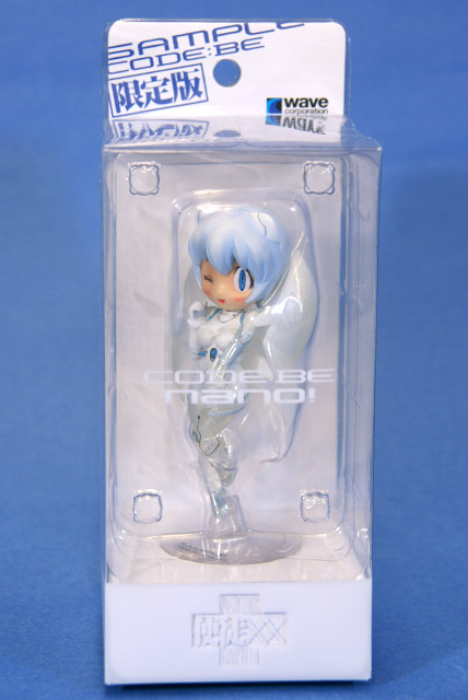 ウェーブ「使徒XXnano! CODE:BE nano!」のサンプルレビューです。これは、2007年11月に発売された、「リリスXXnano!」(サンプルレビュー)を、ウェーブの商品説明によると「表情をウインクに変更し、またカラー設定も吉崎観音氏によりブラッシュアップが施され」た仕様のワンダーフェスティバル 2008[冬]限定品となるもの。脚部がクリアーになっていて、神秘的です。