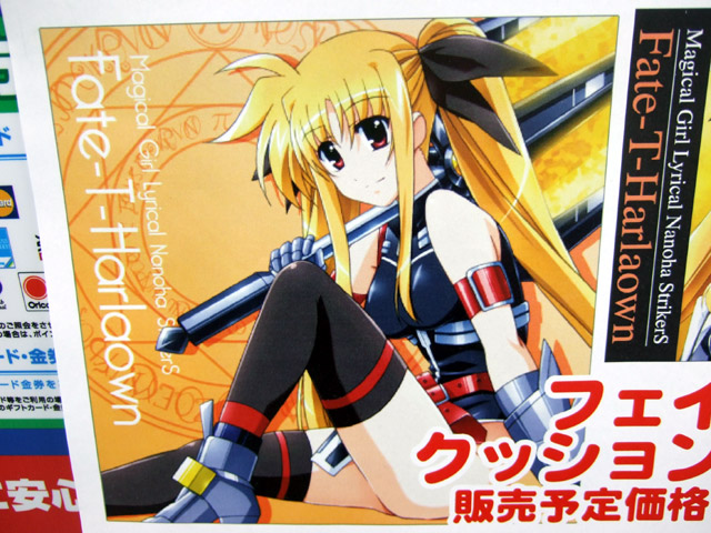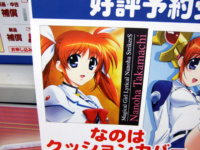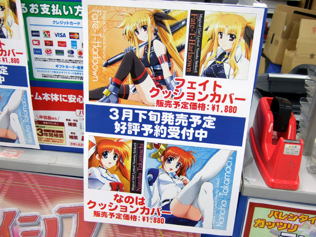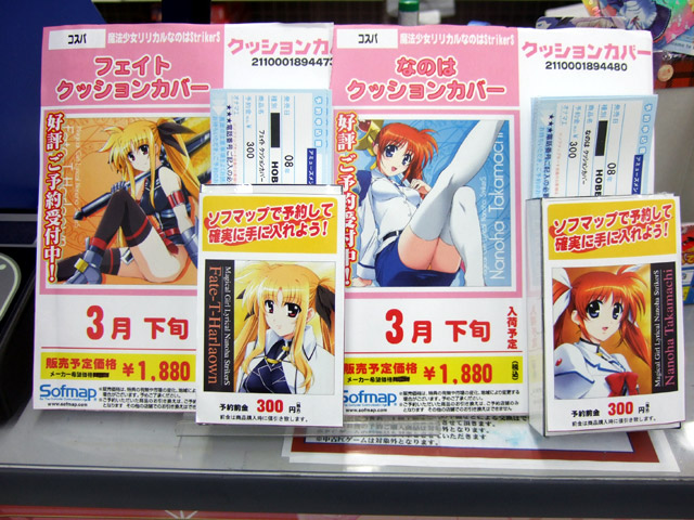 ソフマップアミューズメント館5Fカウンター前では、上記フィギュアの元になった、「アニメディア 2007年5月号」に掲載された、なのはの「パンツ解禁」イラストを用いた、コスパ「なのはクッションカバー」(AA)と「フェイトクッションカバー」(AA)
