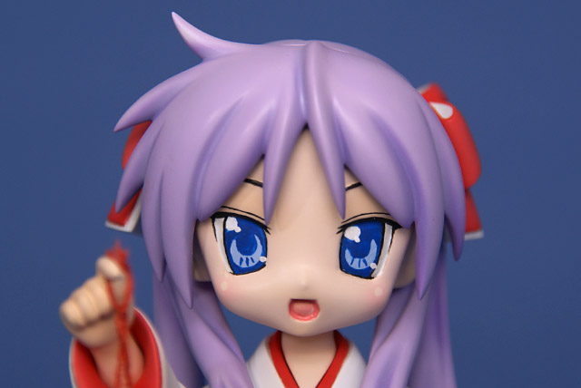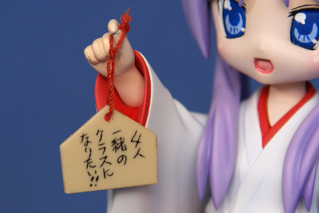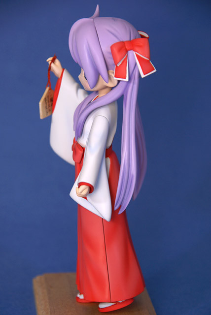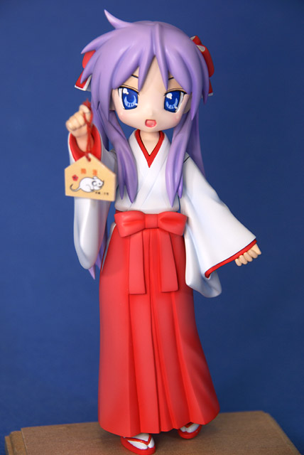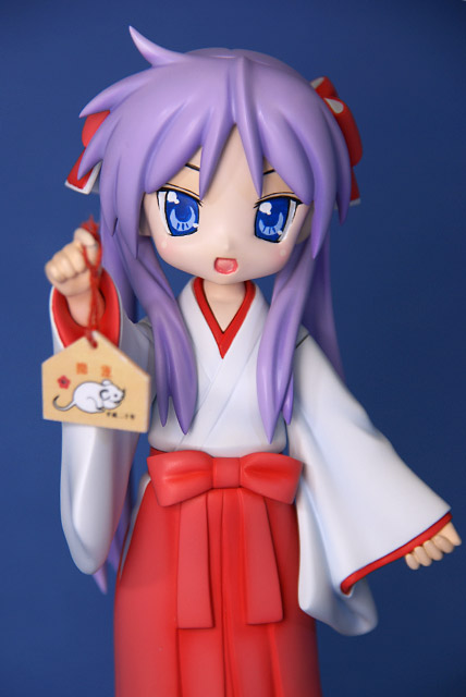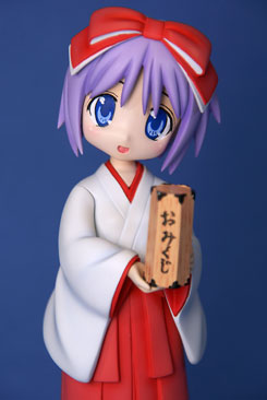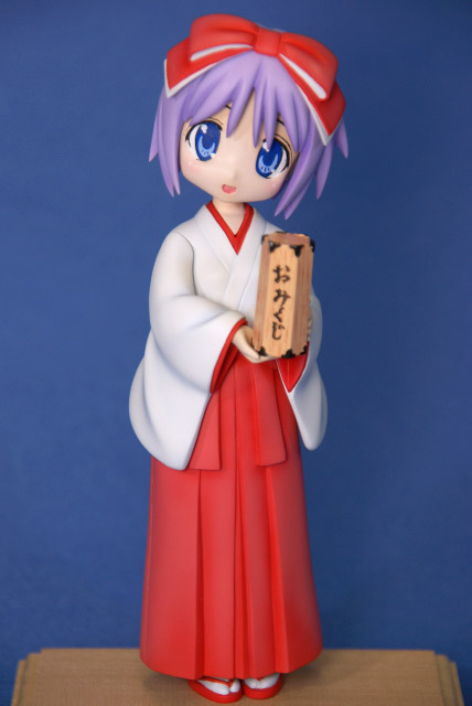 ウェーブの商品説明によると「大人気作品「らき☆すた」より、柊姉妹の双子の妹で癒し系キャラ、つかさがフィギュア化です。製品はイベントで発表されるやいなや、話題となった鶴の館・千鶴氏が手がけたイベント限定キットをブラッシュアップし、PVC製完成品としてリリースいたしました。オマケとしてミニチュアのおみくじが付属しています。」と紹介されています。