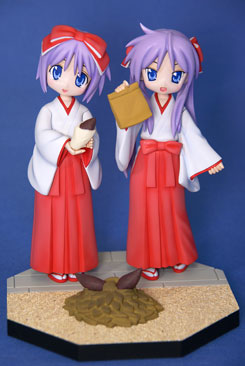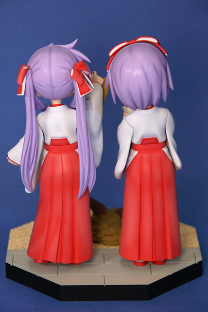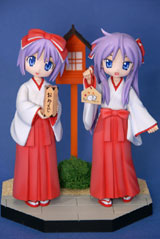 こちらは上記柊かがみ&柊つかさの2体をセットにし、専用の台座をつけたもので、ウェーブの商品説明によると『単品でもそれぞれに魅力的な「柊かがみ」と「柊つかさ」をセットにし、特製ベースを作り起こしたうえでヴィネット仕立てにし、製品化致しました。本製品は宮沢模型(株)のみで流通販売される製品となります。ご注意ください。』と紹介されています。