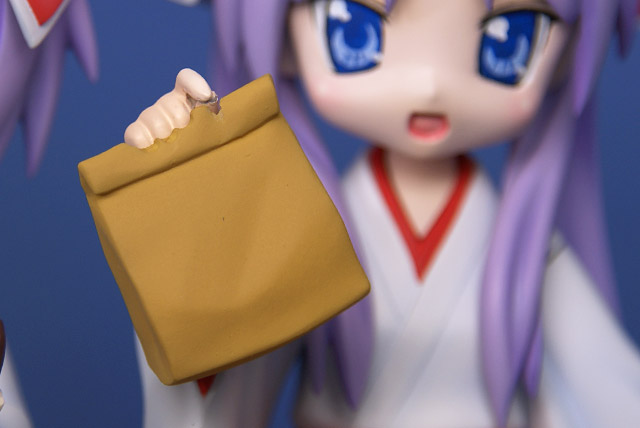 こちらも、上記柊かがみ&柊つかさの2体をセットにし、専用パーツ焼き芋と焼き芋袋をもったシチュになったもので、ウェーブの商品説明によると『単品販売されている「柊かがみ」と「柊つかさ」をそれぞれに手に持っているものをやきいもにしたうえでセットにし、新たにヴィネット仕立てで製品化致しました。本製品はあみあみのみで流通販売される製品となります。また、数量も500個限定となります。ご注意ください。』と紹介されています。