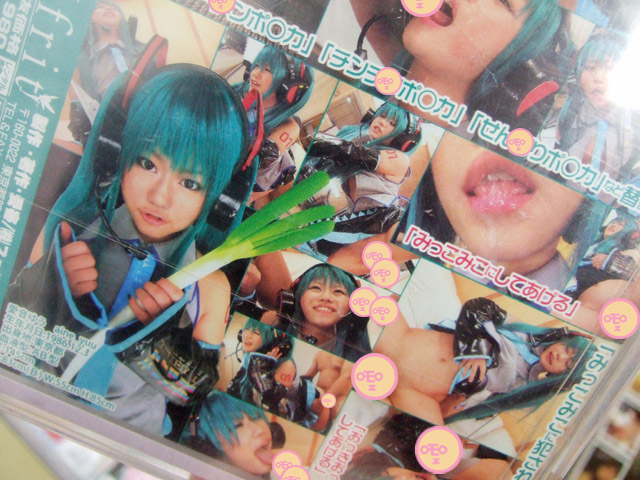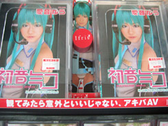 2月20日、イフリート「初音ミコ みっこみこに犯されてやんよ」(AA)が発売されていました。これは、イフリートの商品説明によると「バーチャル・シンガー『初音○ク』が。満待じしてAV化。」という、以前黄金のネギを持ってアキバにも来ていた愛音ゆうさん主演の大人向けDVDです。パッケ裏面によると「初音ミ○激似声優によるアフレコ。」もされてるみたいです。