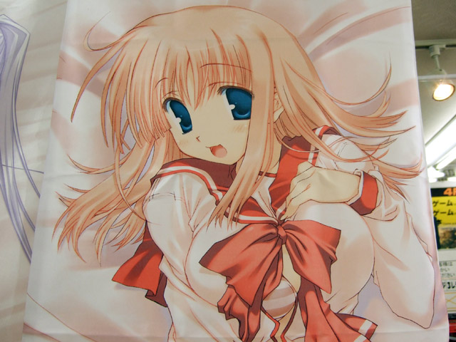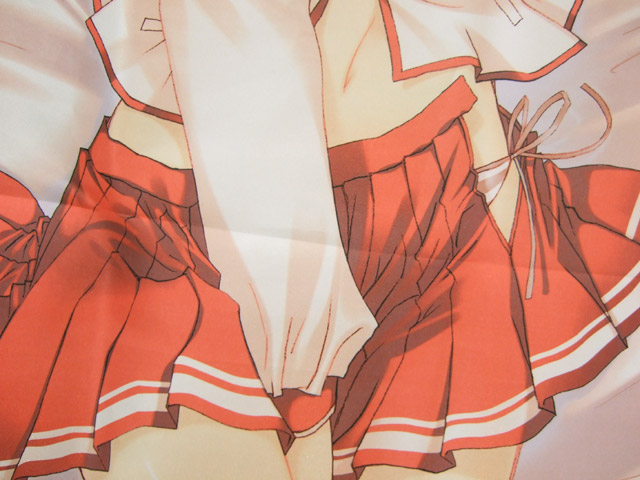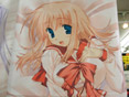 「はるみ抱き枕カバー」のサンプル展示の様子。