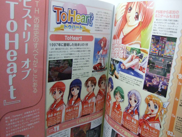 内容ももちろんTH2AD一色といった感じで、各ヒロイン紹介や、OVA「ToHeart2ad 第1巻」(AA)の情報、TH1なども紹介されている、ヒストリーオブToHeatの他、イラストギャラリー、アクアプラス代表取締役の下川氏のインタビュー記事などが掲載されていました。