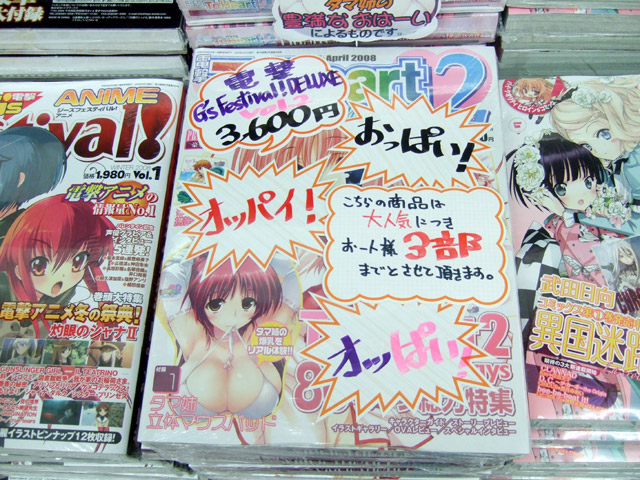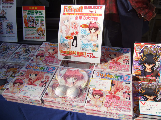 関連:電撃G’smagazine – 公式/電撃G’s Festival! – Wikipedia/ToHeart2 AnotherDays – 公式/ToHeart2 – Wikipedia/タマ姉おっぱいマウスパッド付属の「電撃G’s Festival DELUXE Vol.2」告知POP 『これは「買おうか?どうしようか?」とかゆー問題ではない・・・。結婚だ!!』/史上初「おっぱいマウスパッド」付録「電撃G’s Festival DX」発売 とらで「とある男のGフェスDX的な生活」掲示
