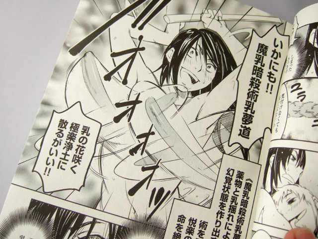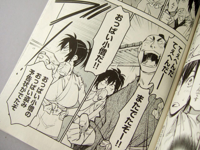 具体的な絵であるおっぱいのほかにも、おっぱいを盗む「おっぱい小僧」とか、時代劇でよくあるシリアスっぽい対峙シーンの台詞がほとんど「おっぱい」だったり、「文字」としても相当な量の「おっぱい」が使用されていますw