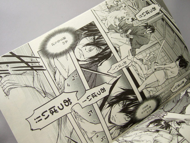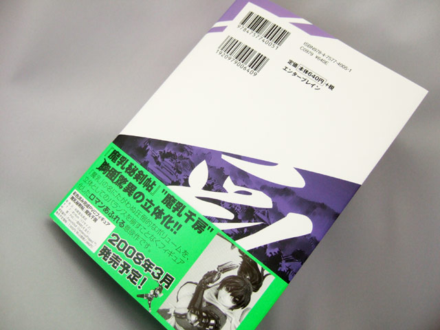 1巻では新海誠氏が「全男子必読!母のおっぱいが恋しくなりました。*急にコメントを求められても困ります。(笑)」というコメントがあったオビは今回Fate/Zeroの著者でもあるニトロプラスの虚淵玄氏で「巨乳に驕る非道の徒。虚乳に嘆く非業の徒。乳に戸惑い、乳に憑かれた魑魅魍魎が跋扈する末法乱世。乳無き人に幸あれと、たわむ双丘に涙を流し、魔乳千房の秘剣が不埒千万な悪を断つ・・・道ならぬ御乳、この一刀にて召し上げ候!」とコメントされています。