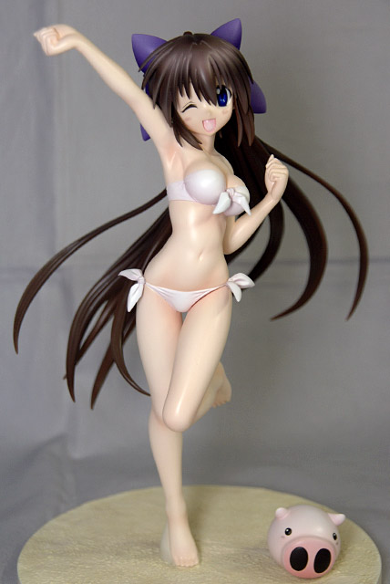 これは、「ながされて藍蘭島」のメインヒロイン「すず」を、ビキニ姿で立体化したもので、コトブキヤの商品説明によると「すずが1/7サイズで立体化!13歳とは思えないほどのナイスバディを水着に包み、元気に飛び跳ねます!長く豊かな髪はすずの動きに合わせて広がり、さわやかな躍動感を演出しています。砂浜ベースの上にちょこんと乗っかるとんかつも、何だか嬉しそう・・・?」と紹介されています。