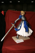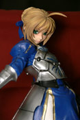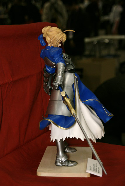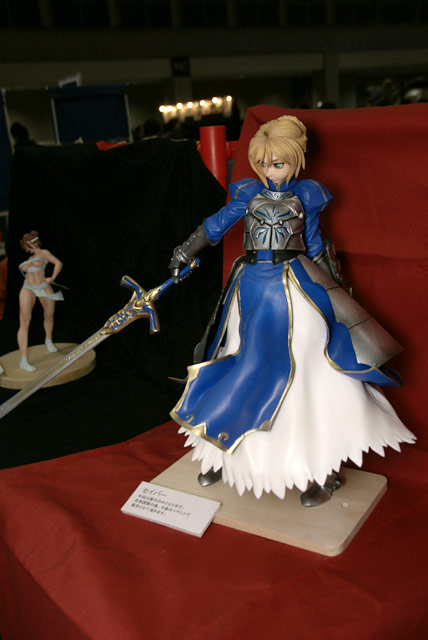 2008年2月24日に開催された、ワンダーフェスティバル2008冬のコブラ会さんのブースでは、新作の「Fate/stay night セイバー」の参考出品がされていました。唐詩郎氏のブログによると「さし当たって出来かけ状態のを、無理繰りレジンに置き換えてもらって塗っております」とのことで、まだ製作途中のものみたいですが、すでにものすごい存在感を発揮していましたよ!