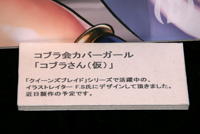 また、POPによると『「クイーンズブレイド」シリーズで活躍中の、イラストレイターF.S氏にデザインして頂きました。近日製作の予定です。』という、「コブラ会カバーガール コブラさん(仮)」のイラストが大きく掲示されていました。