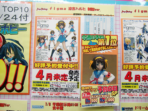 今週の1位は、マックスファクトリー「Figma 涼宮ハルヒ 制服Ver.」(AA)で、2位が「Figma セイバー 甲冑Ver.」と、figmaの4月新作が1,2フィニッシュとなっていました。
