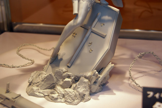 2008年2月24日に開催された、ワンダーフェスティバル2008冬の、今までお伝えした以外のメーカーブースの様子を、5回に分けてお伝えします。こちらでは、ウェーブ、yujin、アゾン、ふうきたん、とらのあなの5ブースの様子をお伝えします。画像は、とらのあなブースで展示されていた、白髪氏原型の「続・殺戮のジャンゴ 名前のない女」の未彩色サンプルの股間部分。