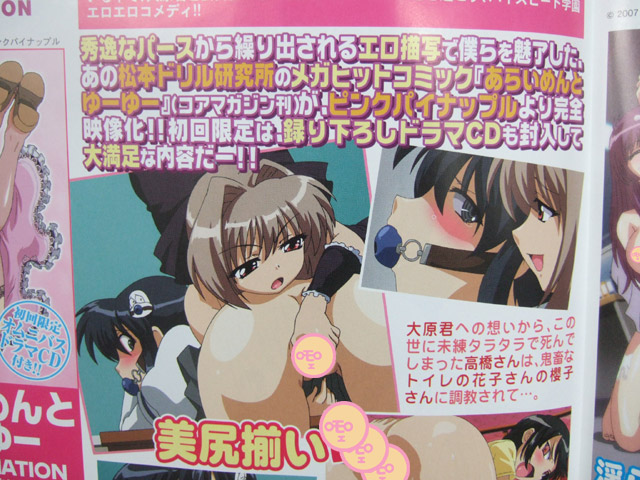 ソフマップ秋葉原PCゲーム・アニメ館で配布されていた「ピンクパイナップルエクスプレス」にも、紹介記事が掲載されていて、「お尻に注目!!えろ過ぎ注意♥」「秀逸なパースから繰り出されるエロ描写で僕らを魅了したあの松本ドリル研究所のメガヒットコミック『あらいめんとゆーゆー』(コアマガジン刊)がピンクパイナップルより完全映像化!!初回限定は撮り下ろしドラマCDも封入して大満足な内容だー!!」「美尻揃い♥ あらいめんとゆーゆーといえば尻♥」などと書かれていて、たしかにお尻向けたサンプル画像が多い気がしましたw