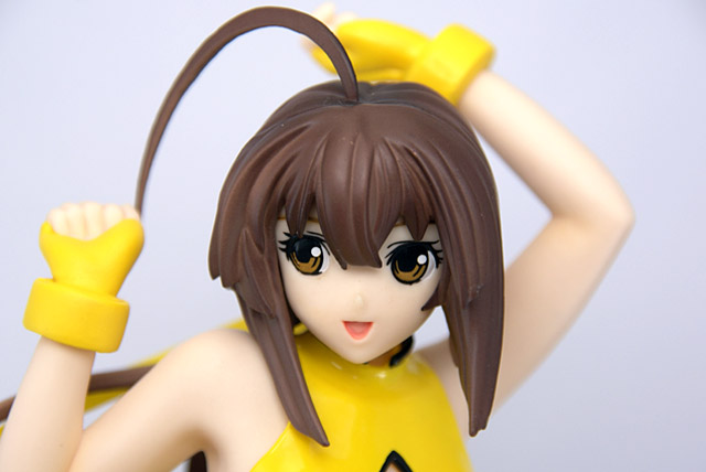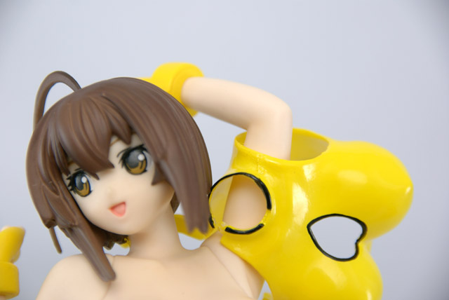 ムービック「セキレイ 結 レースクイーンver. WF限定カラー(黄色)」のレビューです。これは、以前合同展示会での無彩色サンプルをお伝えした、4月発売予定の「セキレイ 結 レースクイーンver.」(AM)を、イエローを基調としたコスにした、ワンダーフェスティバル2008冬限定先行販売のカラバリ。乳部分はがんばればキャストオフ可能で、例のシャツとの組み合わせが凶悪!w