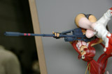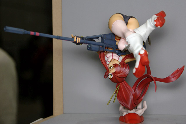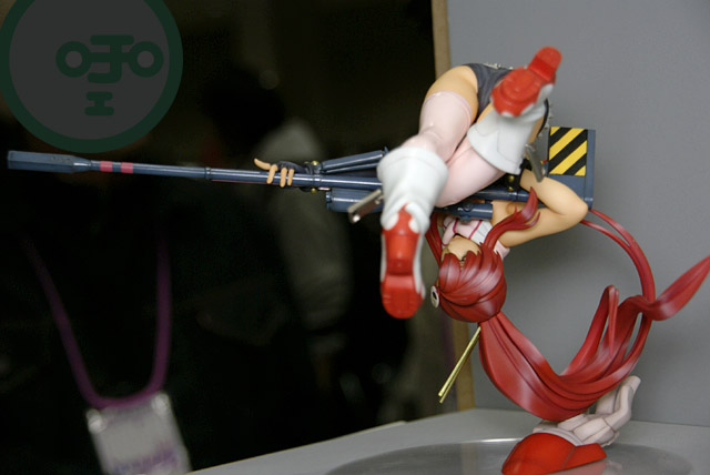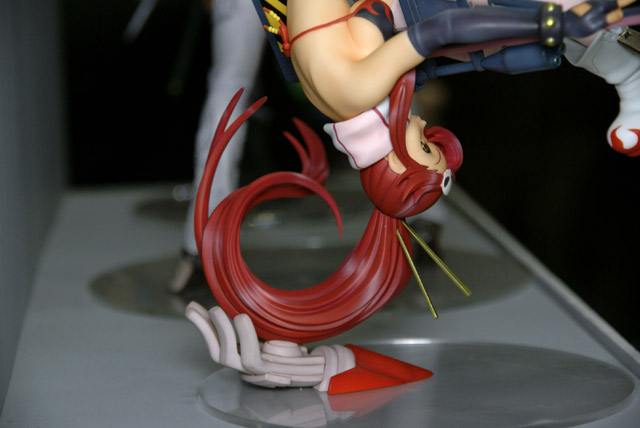 2008年2月24日に開催された、ワンダーフェスティバル2008冬のジェットストリームブースでは、新作ガレキの「天元突破グレンラガン ヨーコ」の作例サンプルが展示されていました。これは、「天元突破グレンラガン」のキャラ「ヨーコ」を、ライフルを構えて飛び退るポーズで立体化したものです。「知人に背中が良いとのお言葉を頂きました。」という背中は、確かに色っぽくてステキw