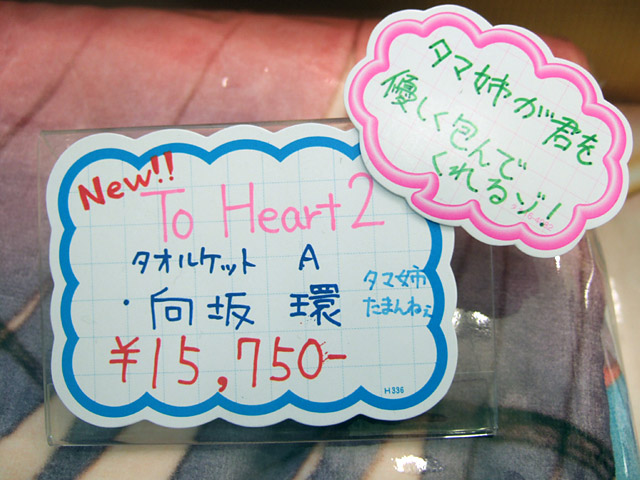 他、POPによると「タマ姉が君を優しく包んでくれるゾ!」という、サイズが1400mmx1800mmの超巨大なタオルケットの「向坂環」(AM)と「ささら&まーりゃん先輩」(AM)も入荷していました。