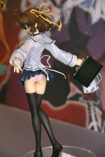 2008年3月5日に開催された、フィギュアメーカー合同展示会2008冬のグッドスマイルカンパニーブースで、グッドスマイルカンパニー「ダ・カーポ 朝倉音夢」のサンプルが展示されていました。これは、WF2008冬でも展示されていた、「D.C. ダ・カーポ」のキャラ「朝倉音夢」を立体化したものです。後ろからだとパンツ丸見えな豪快さに加え、制服の横に疑惑の分割線が・・・?w