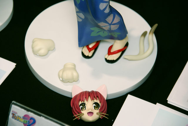 2008年3月5日に開催された、フィギュアメーカー合同展示会2008冬のタキコーポレーションブースでは、タキコーポレーション「向坂環 猫マタ浴衣Ver.」のサンプルが展示されていました。これは、「ToHeart2」のキャラ、タマ姉こと「向坂環」を、浴衣姿で立体化したもの。別途猫ひげ&ミミフェイスやネコ手パーツ等が展示してあって、猫マタ姿?にも出来るみたいです。