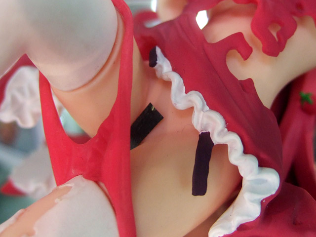 ポーズ的に、流石に腕には分割線が確認できますが、ボディ部分は一体成型みたいで、うっすらうかぶ肋骨部分も再現しているなど、妙に艶かしいエロリボディとなっておりましたよ!w